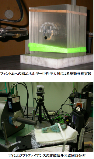 また、古代エジプトのガラス質遺物(ファイアンス)またはそれらの原材料となる砂・岩石等中の主要元素・微量元素の構成元素を中性子放射化分析や蛍光X線 分析での非破壊による定性・定量的に分析し、含有率等の分布状態から時代性・地域性の考古学的特徴を導出し、歴史的な背景・推移等を検証する上での科学 的・考古学的な情報源を蓄積するための基礎研究も行っています。
