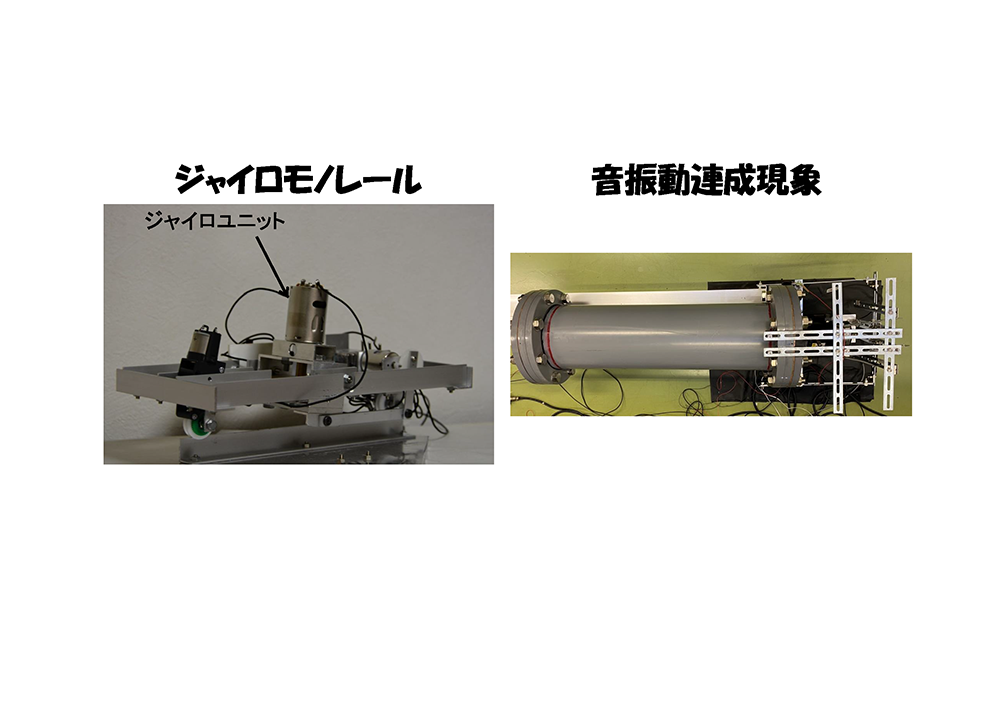 左側の写真はジャイロユニットと呼ばれる姿勢安定装置を組み込んだジャイロモノレールです。自ら設計・製作することで試行錯誤し、より安定性の高いジャイロモノレールの製作することで得られた知識を基に鉄道車両における車体安定技術への応用を目指しています。